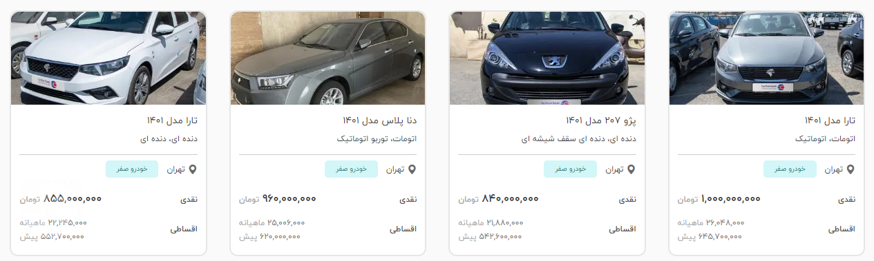 خرید انواع خودروهای صفر 800 میلیونی تا 1 میلیاردی در نمایشگاه آنلاین همراه مکانیک
